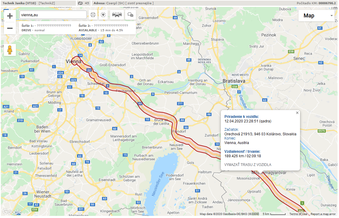 Môžete si naplánovať trasu pre každé vozidlo a následne dostávať upozornenia pri nasledovných udalostiach: